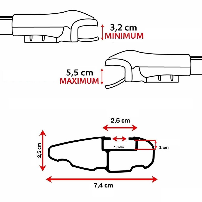 Bitte beachten Sie, dass diese Querträger ausschließlich für die Befestigung von Dachträgern geeignet sind, die einen Spalt zwischen dem Dach Ihres Fahrzeugs und dem Dachträger aufweisen.
