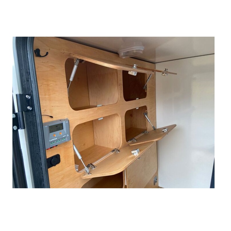 - Klapptisch innen, diverse Einbauten mit Fächern (Schreiner-Qualität)
