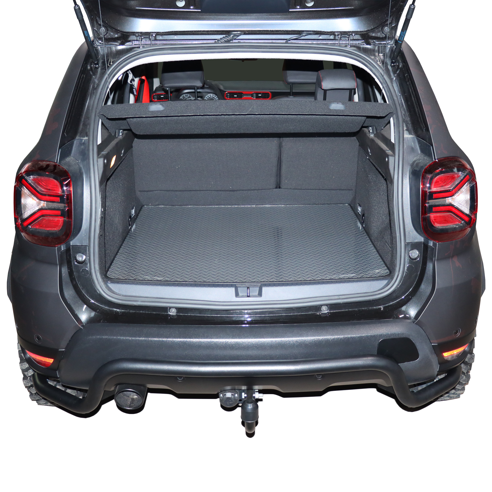Exclusive Kofferraummatte aus Aluminium mit Anti-Rutsch-Relief für Dacia Duster II Bj. 2018-2023 – Stilvoller Schutz für Ihren Kofferraum